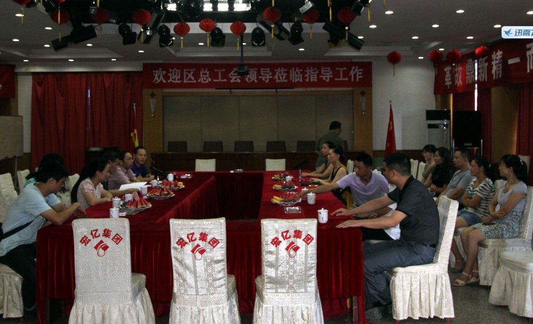 在集團多功能廳,集團工會主席江容娜匯報了宏億集團的發(fā)展、集團工會的建設和近年來工作的成績及今后的工作打算。聽取匯報后,區(qū)總工會副主席王磊詢問了集團發(fā)展中的相關問題和員工的職業(yè)健康情況,并強調(diào)要堅持安全生產(chǎn)和維護職工的權益。江主席表示:“非常感謝上級工會組織對我公司員工的深切關懷,集團工會將及時發(fā)放清涼物品和防暑藥品,把上級領導和工會的關懷送到員工的手中。集團工會將本著企業(yè)發(fā)展惠及職工的原則,服務職工群眾,維護職工合法權益。根據(jù)廣大職工工作生活的實際情況,積極為職工群眾辦實事,時時了解職工的所需、所想、所求,不斷創(chuàng)新,更好地完成工會的職責,為企業(yè)的建設和發(fā)展、為提高我公司職工的勞動積極性和企業(yè)凝聚力努力做好工會工作。”