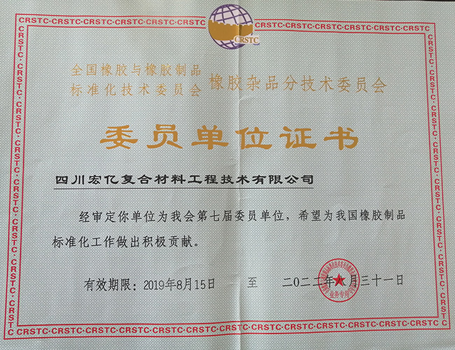 全國橡膠與橡膠制品標準化技術委員會橡膠雜品分技術委員會(委員單位證書)